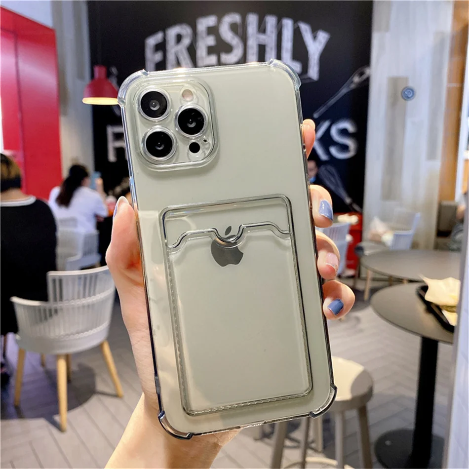 Прозрачный чехол для телефона с держателем для карт для iPhone 12 M...
