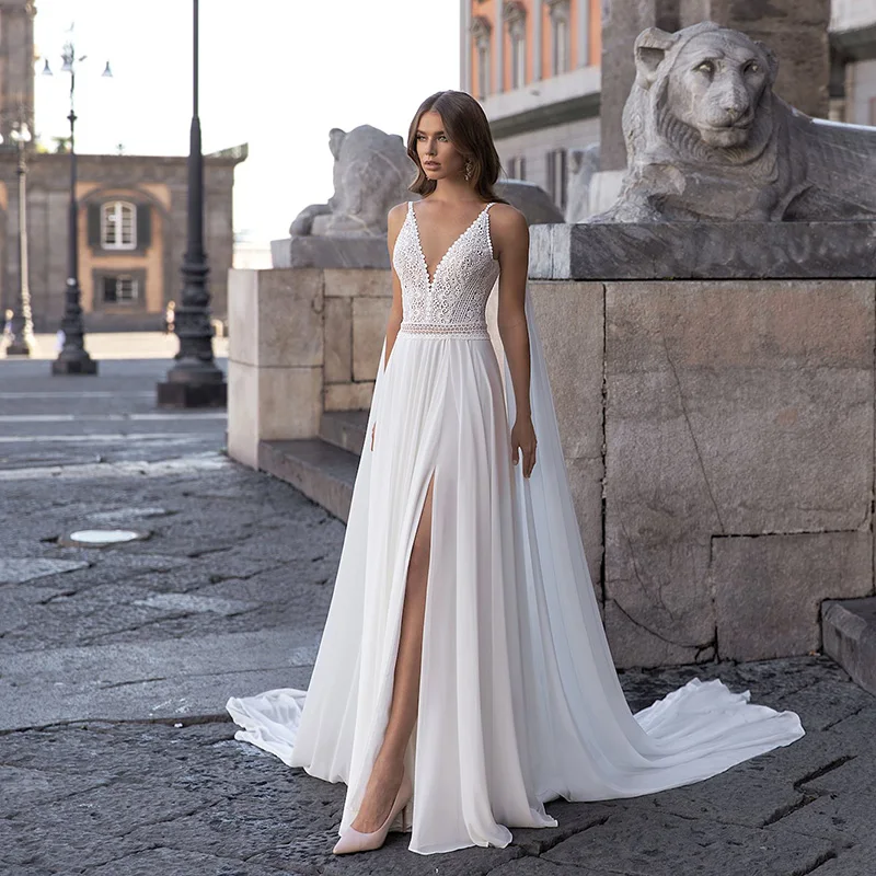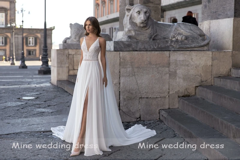 Женское свадебное платье It's yiiya, белое кружевное шифоновое платье-трапеция без рукавов с V-образным вырезом и длинными лентами на лето 2021