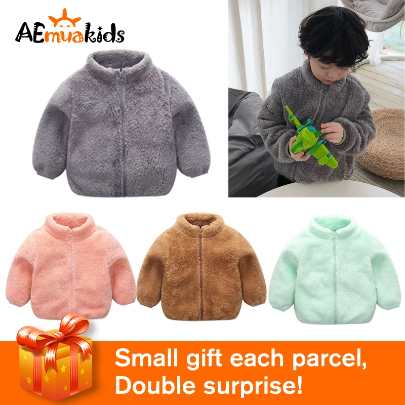 Новое зимнее плюшевое теплое пальто для девочек, милая осенне-зимняя теплая шерстяная детская одежда на молнии для маленьких мальчиков и девочек
