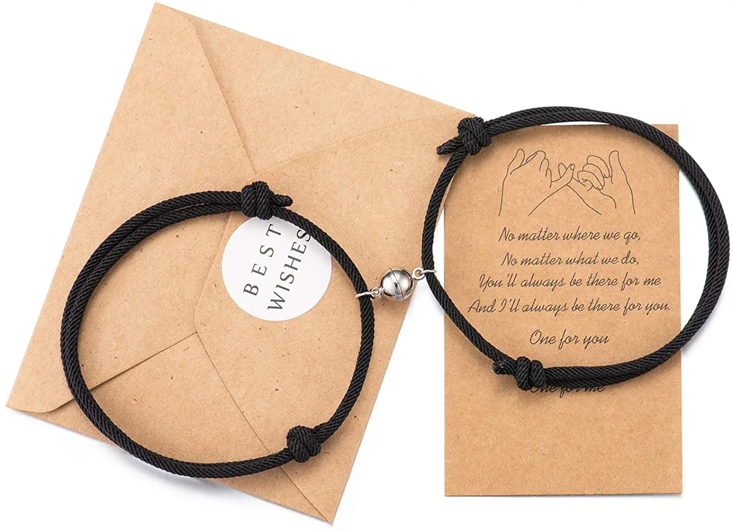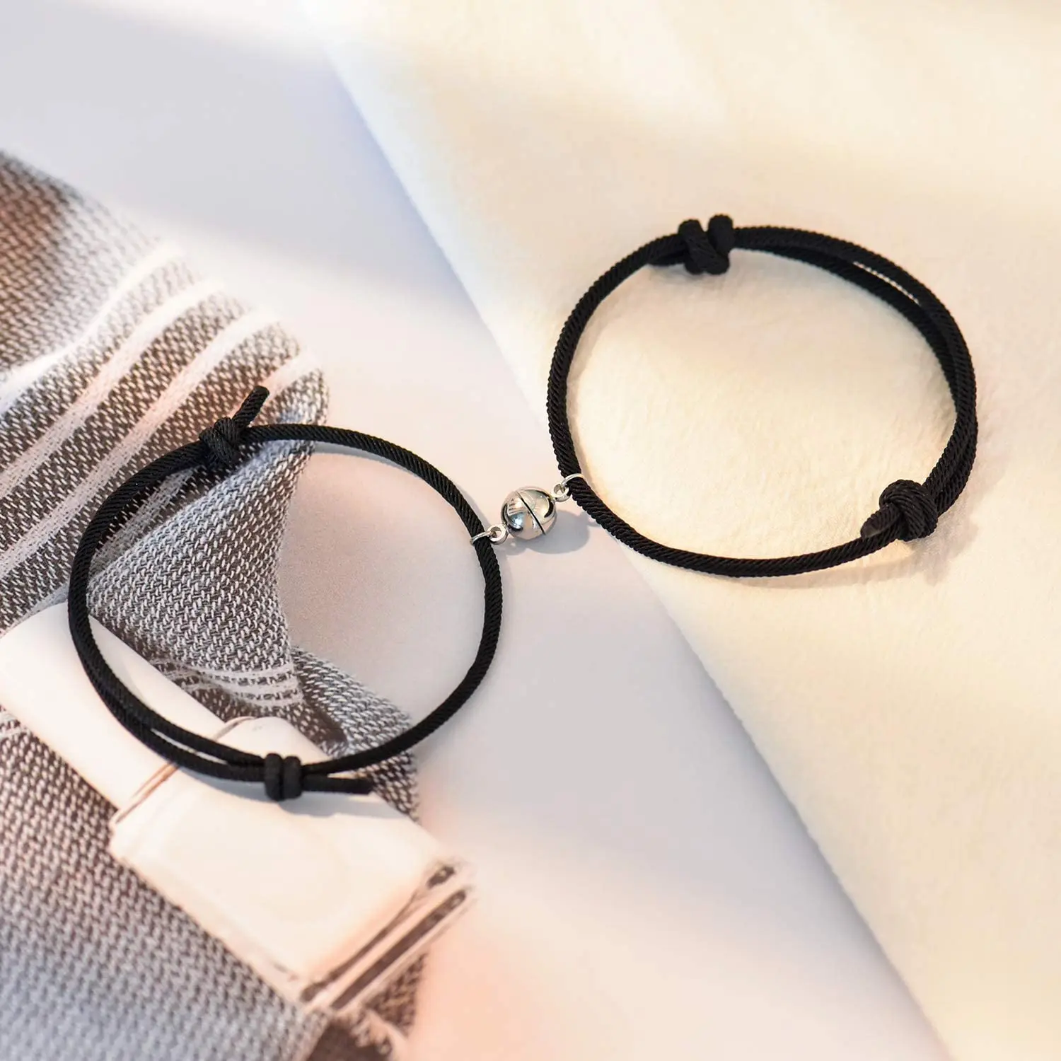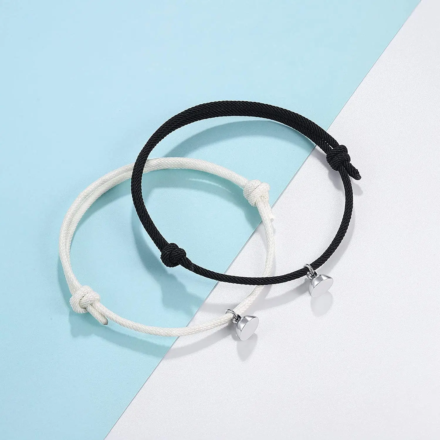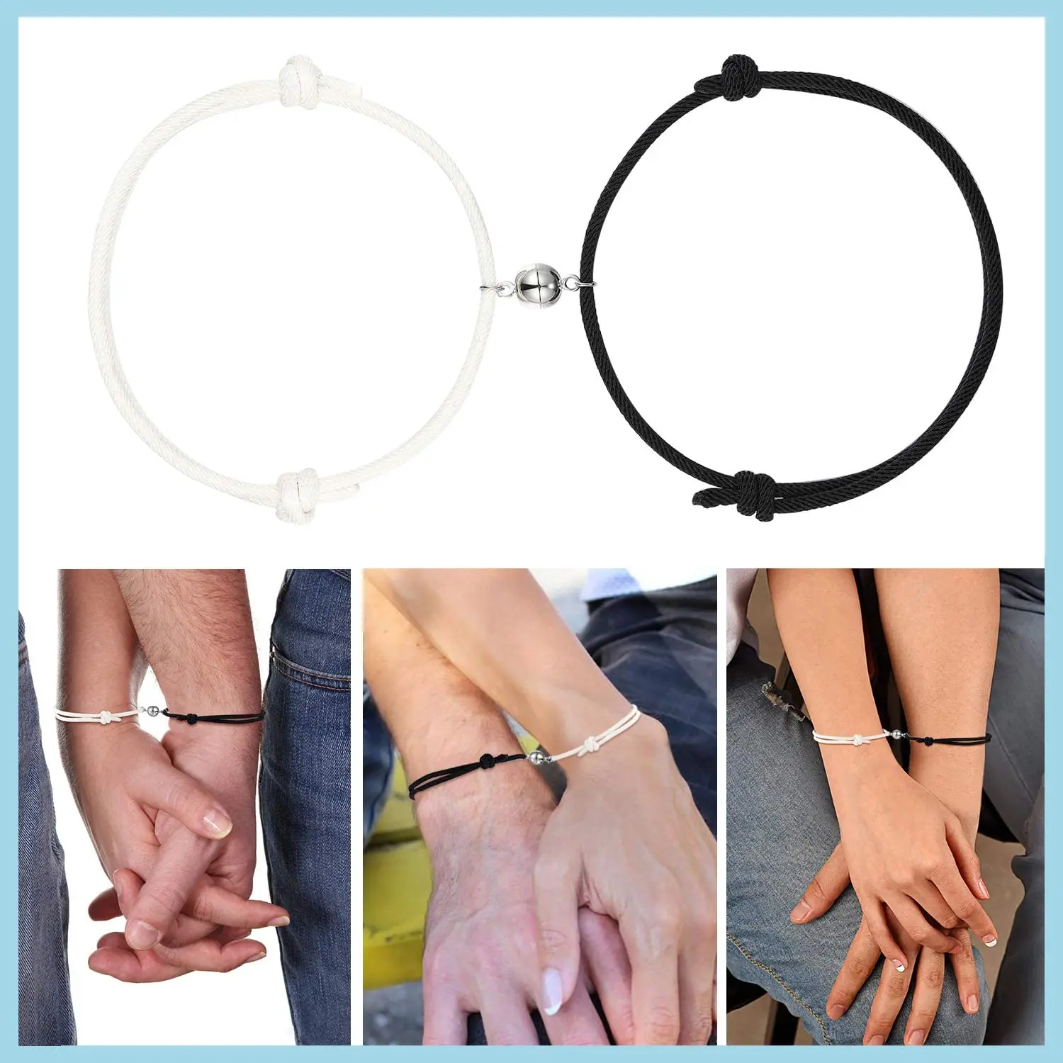 Браслет Магнитный ручной работы для пар, регулируемый веревочный браслет с бесконечными надписями на удачу, черный и белый цвета, в подарок