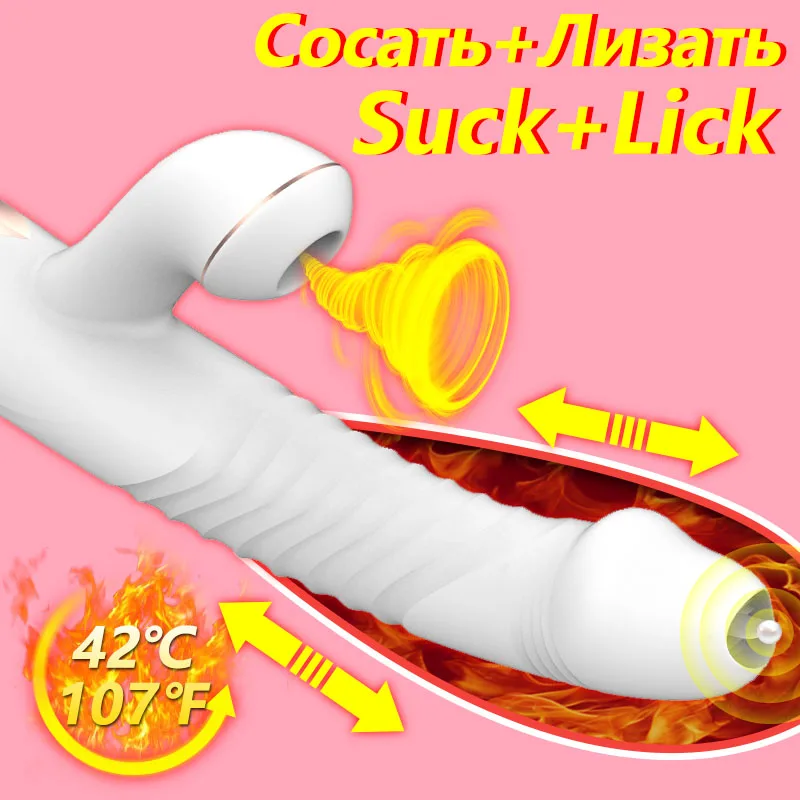 Выдвижной вибратор, фаллоимитатор для массажа точки G, лижущий язык...