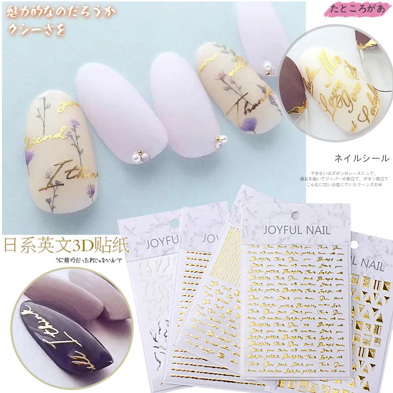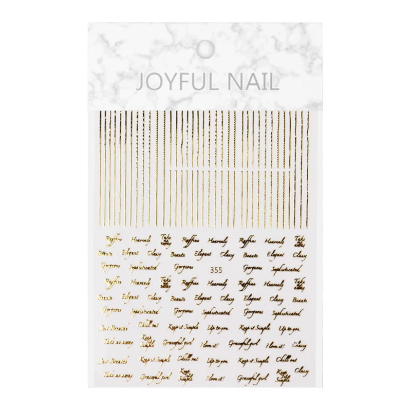 3D наклейки для ногтей с золотыми буквами, Золотая цепочка, маникюрный слайдер, геометрические серебряные линии, аксессуары для дизайна ногтей, фольга, буквы, украшение для ногтей