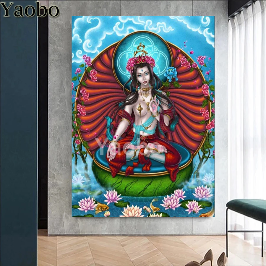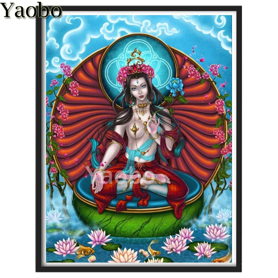 Бриллиантовая вышивка, религиозная богиня Лотос 5d алмазная краска, полностью квадратная круглая Алмазная картина, стразы, Декор