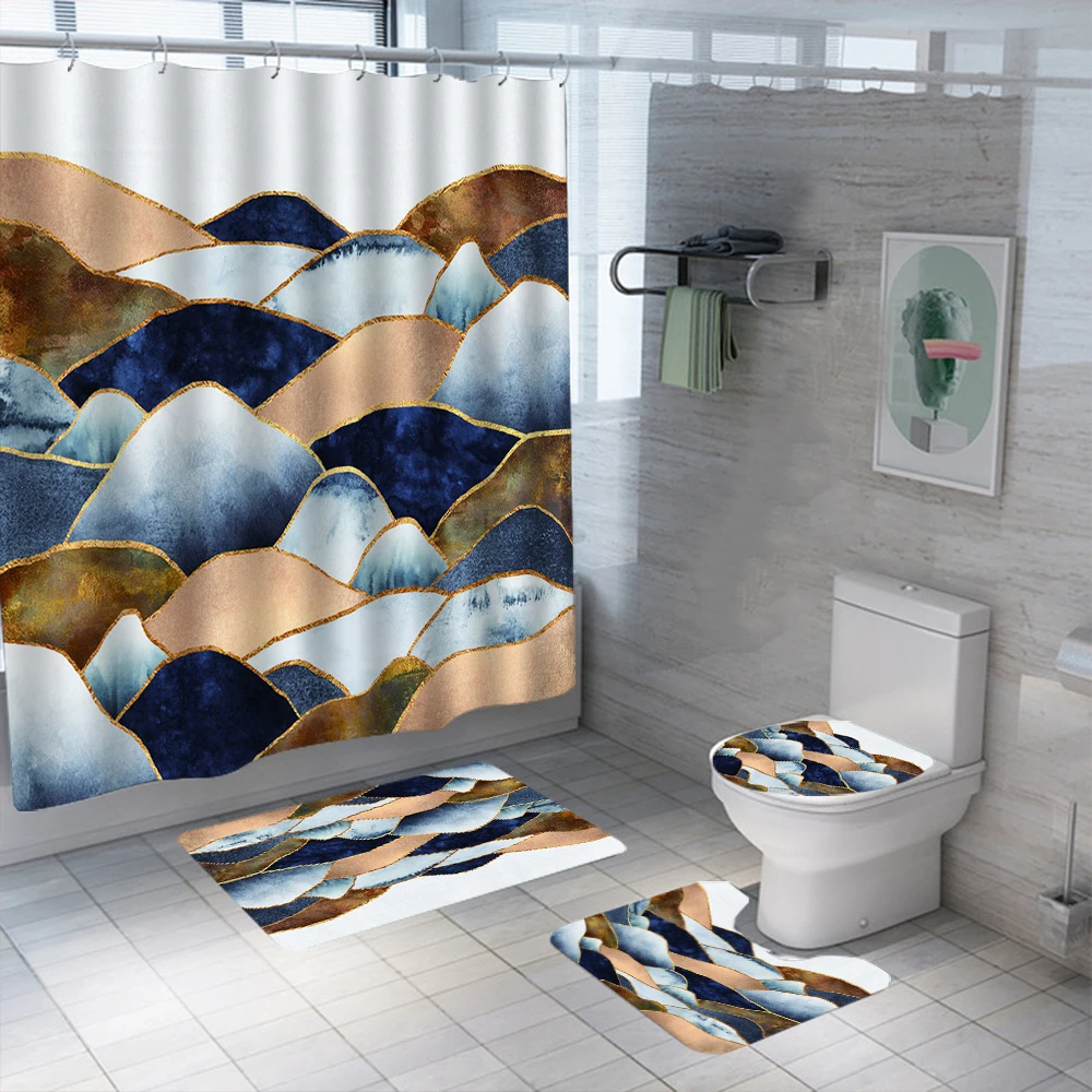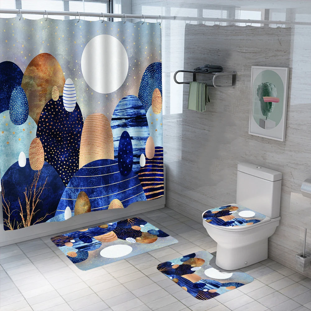 Набор водонепроницаемых занавесок для душа из полиэстера, с нескользящей крышкой