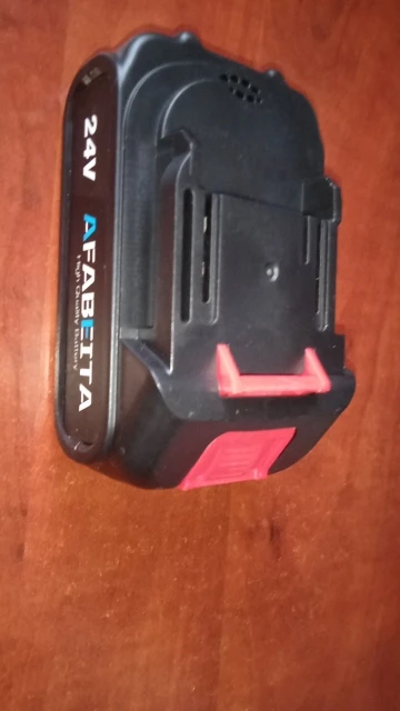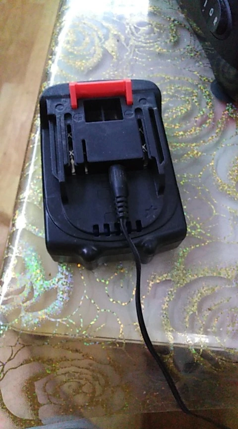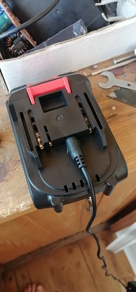 акб пришёл полностью заряжен.подогнал его к перфоратору путём подпиливания его задней части болгаркой и доработки разъема перфоратора. работает.