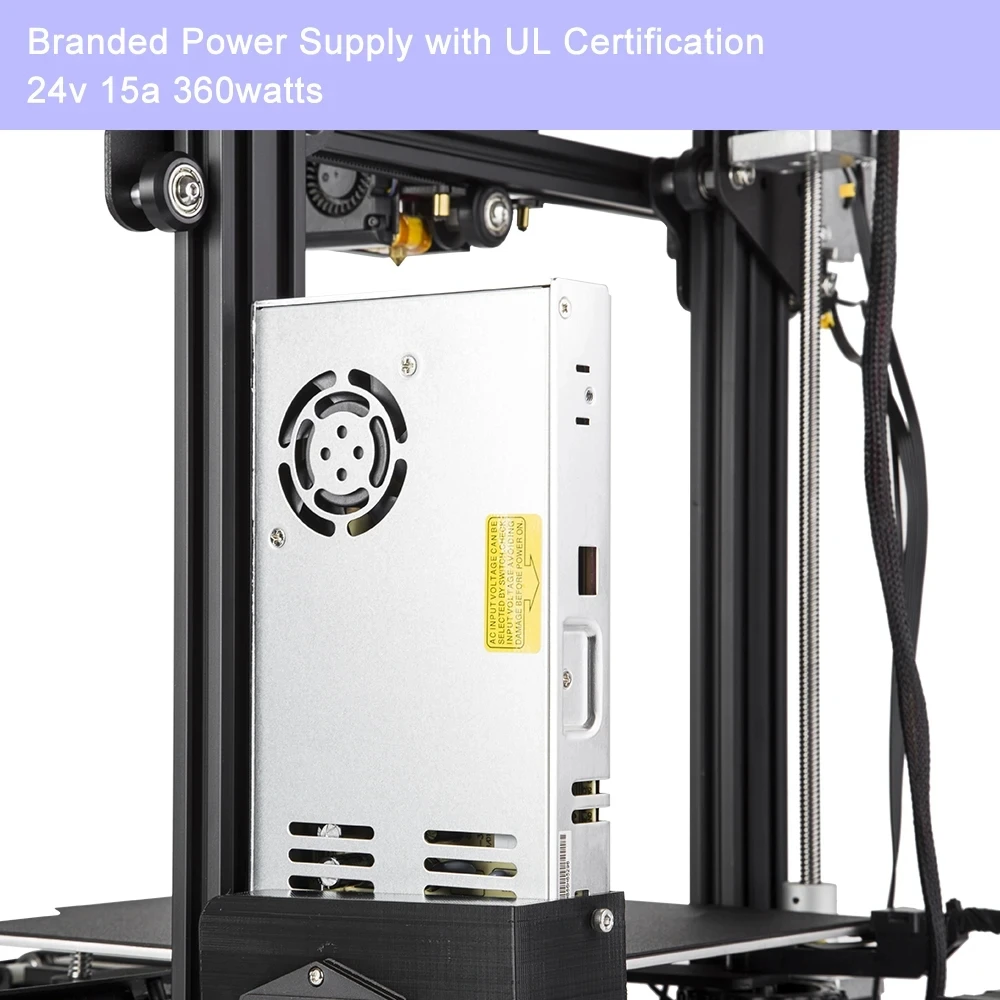 Источник питания MeanWell: оснащен сертифицированным UL блоком питания MeanWell, он отвечает всем потребностям быстрого нагрева и длительного 3d-печати.