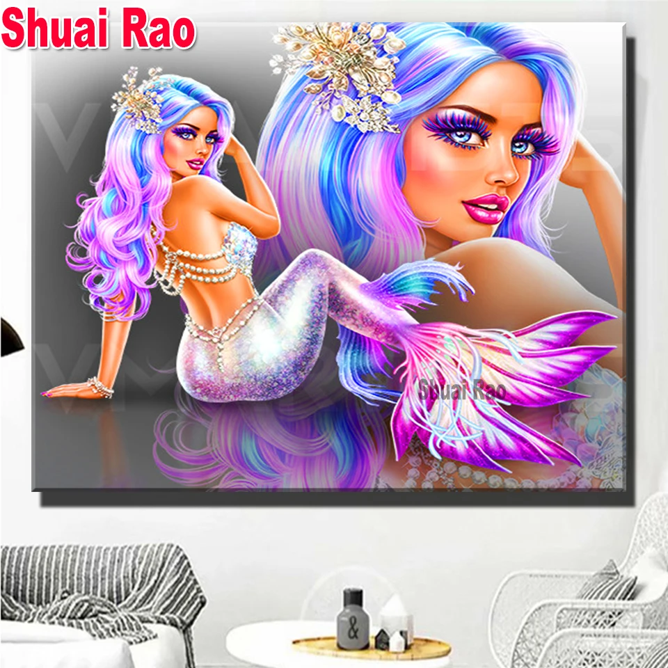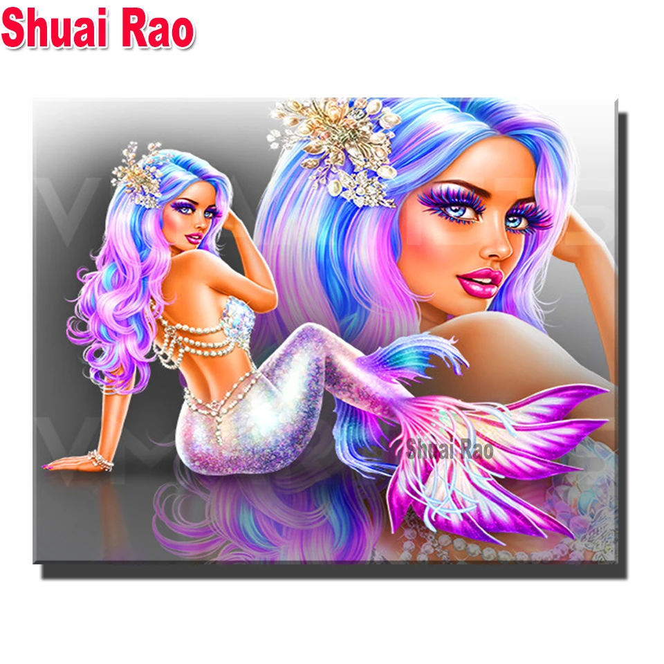 Алмазная живопись русалка, вышивка из страз, мультяшный рисунок 5D для девочек, полноразмерная Вышивка крестиком, инкрустированный узором, инкрустированная привлекательная дама, подарок для детей