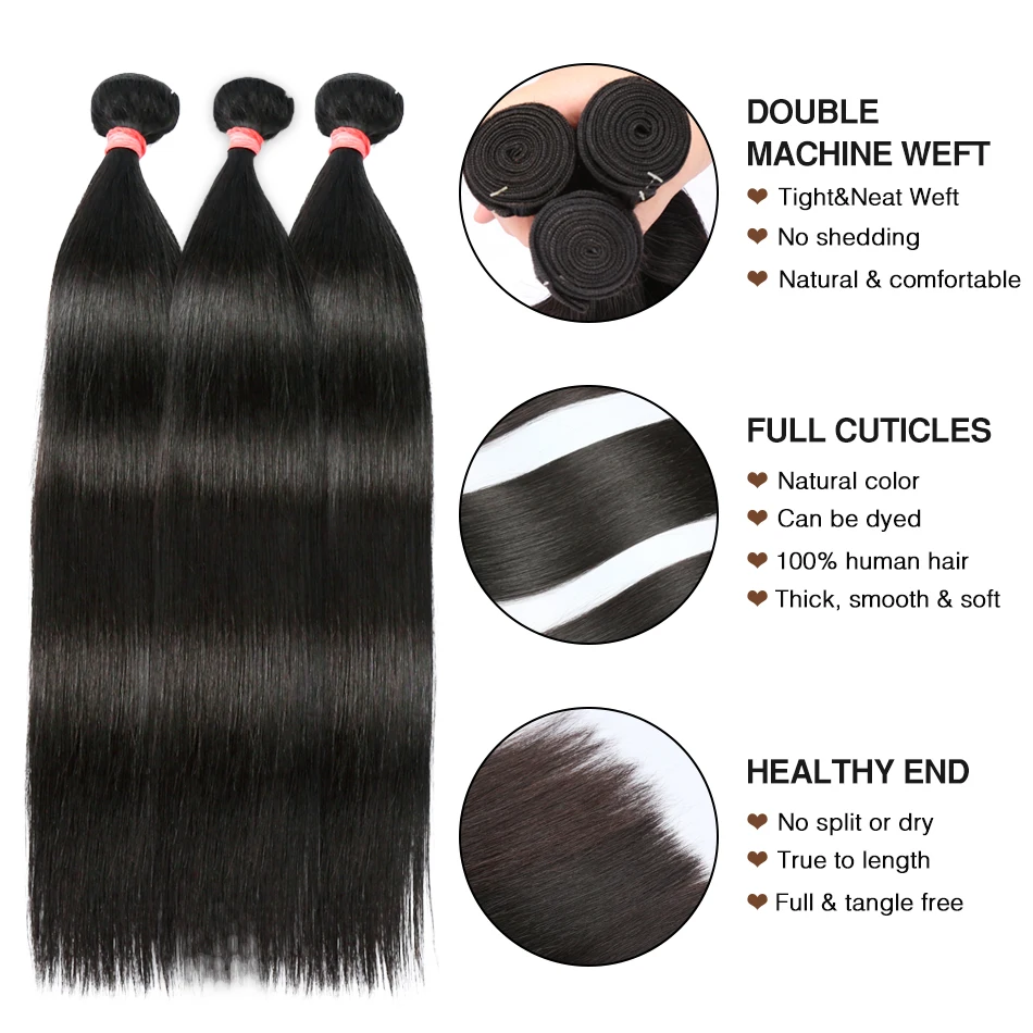 Натуральные Прямые бразильские пучки Miss Black, 34 пучков, 100% че...