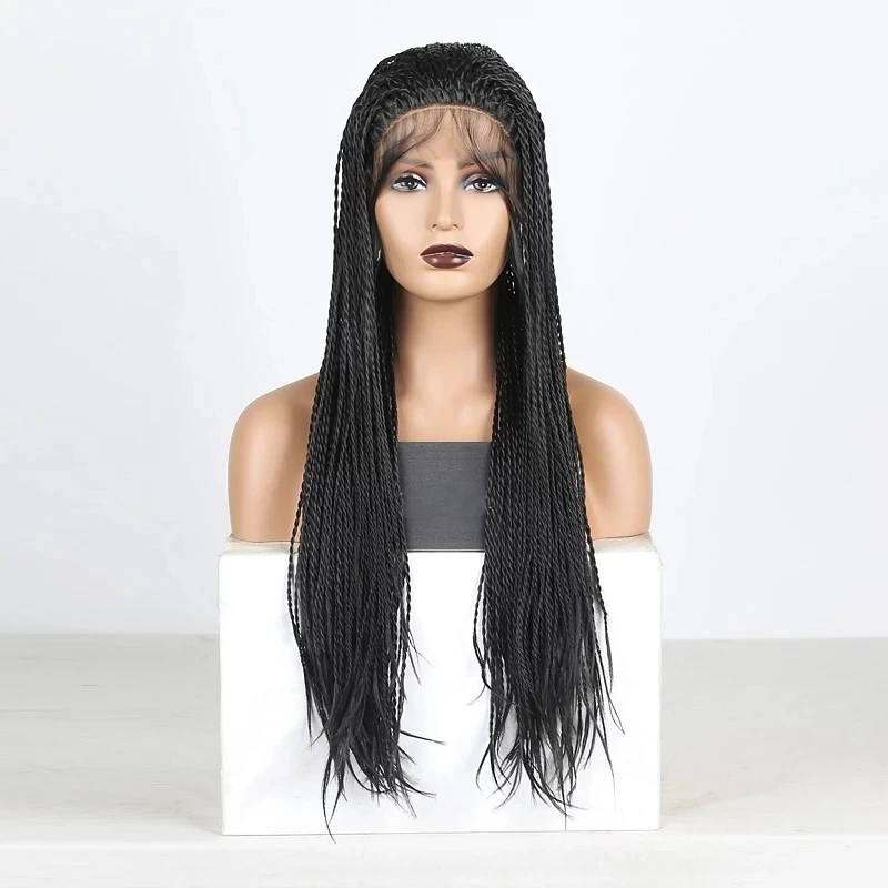 Длинные коричневые плетеные парики парик из высокотемпературного волокна крючком натуральные черные косы синтетические кружевные передние парики для африканских женщин