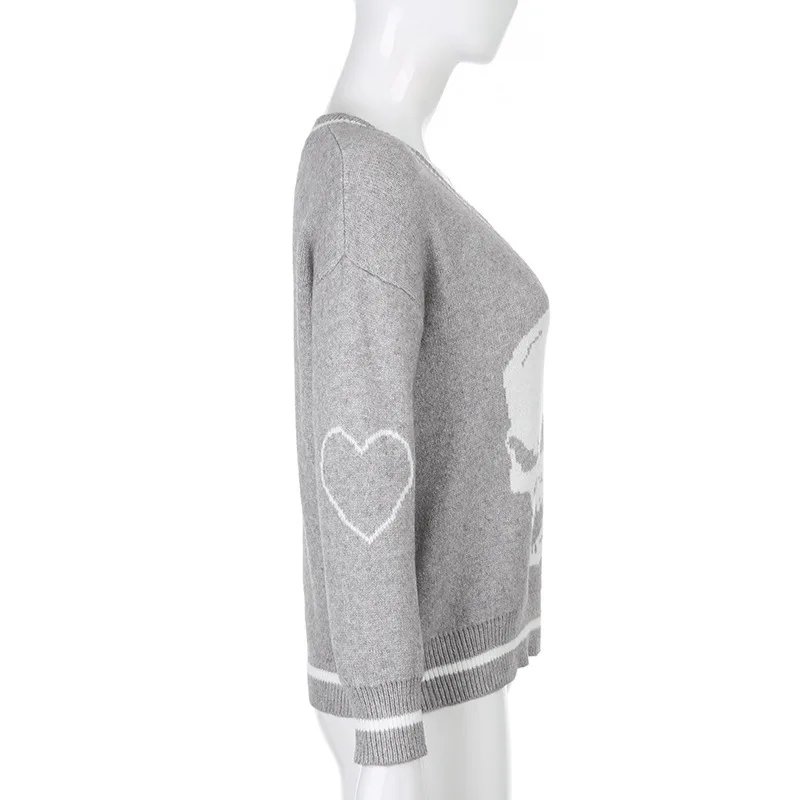 Свитер женский вязаный, с принтом черепа, с V-образным вырезом, осе...