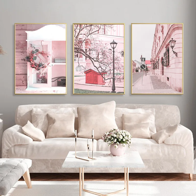 Современный модный розовый милый стиль Пейзаж Плакат настенное Искусство Печать на холсте цветок картина в скандинавском стиле постер для общежития домашний декор