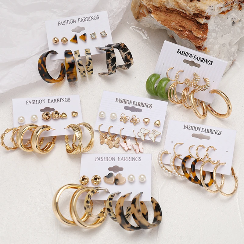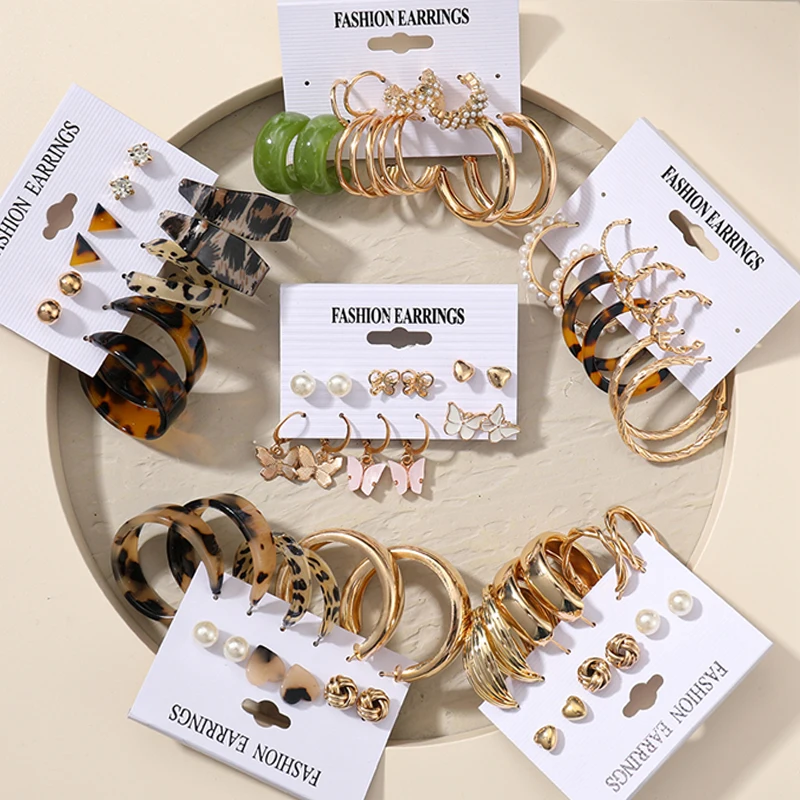 Модные серьги-кольца 17KM Леопардовый цвет, акриловый, геометрические золотые металлические серьги-кольца Комплект сережек для женщин, модные ювелирные украшения для вечеринок 2021