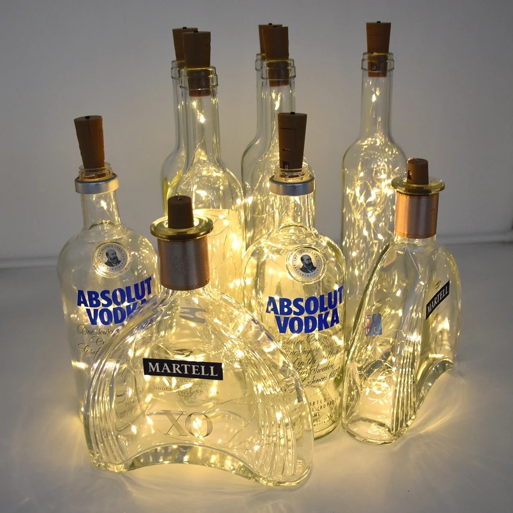 20 светодиодные светильники в форме винных бутылок с пробкой 20 пакет Батарея работает серебряной проволоки Фея мини гирлянда светильников для "сделай сам", вечерние, Свадебный декор