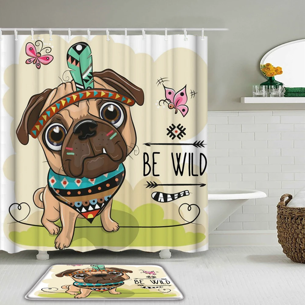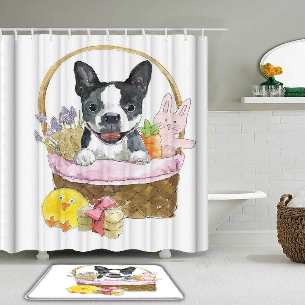 Симпатичные бульдог занавески Водонепроницаемый 3d шторы с крючками...