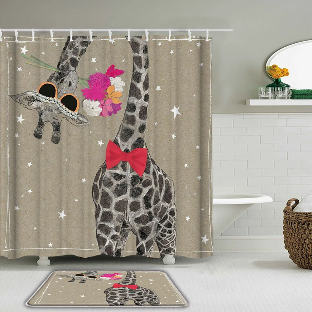 Занавеска для душа с изображением жирафа и крючком, декоративная Че...
