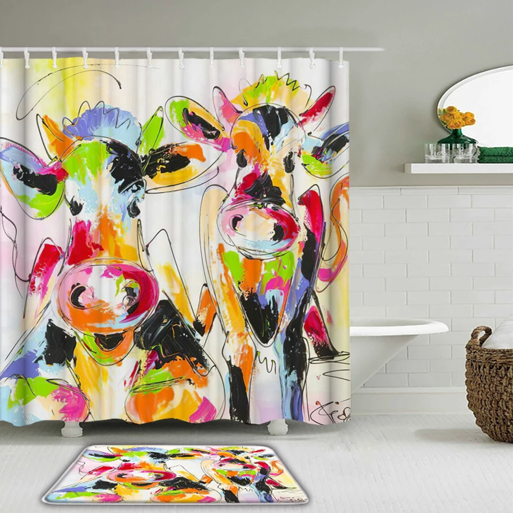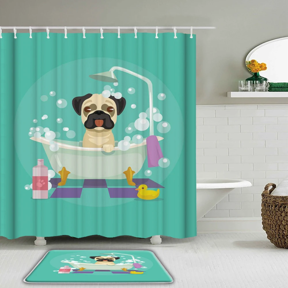 Мультяшная Милая Штора для кошек, собак, кроликов, бульдогов, альпаки, набор штор для душа, Нескользящие Коврики для туалета, коврик для ванной, водонепроницаемая занавеска для ванной из полиэфира, занавеска