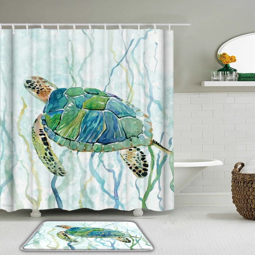 2 шт.компл. 3d занавеска для душа океанская жизнь, рыба, дельфин, А...