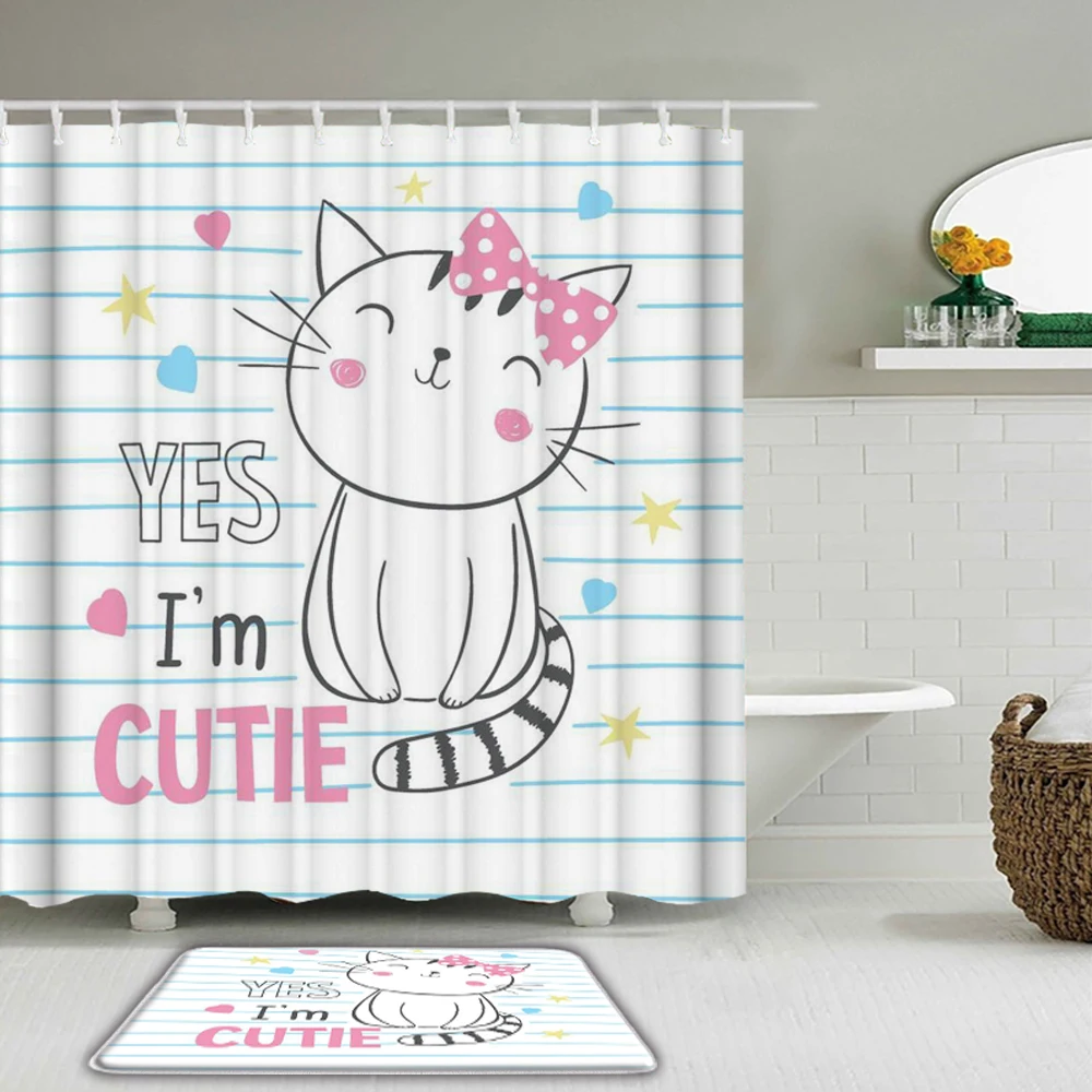 Занавеска для душа с мультяшным забавным котом и милыми животными, ...