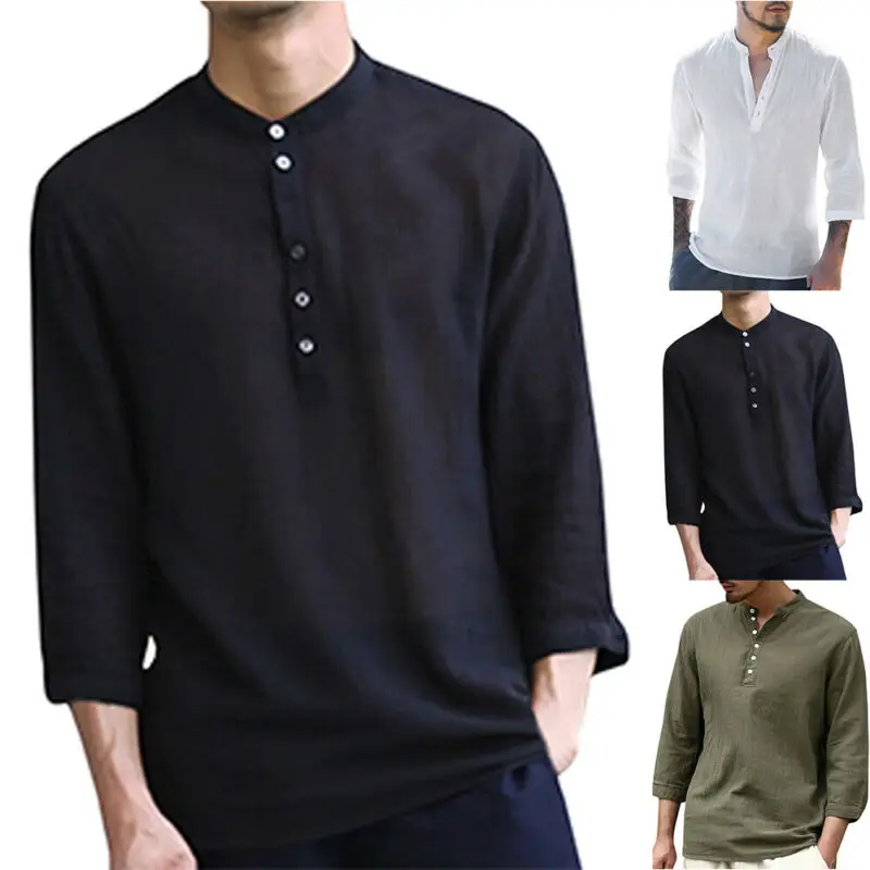 Мужская рубашка на пуговицах, с рукавом 34, свободного покроя, с V-образным вырезом