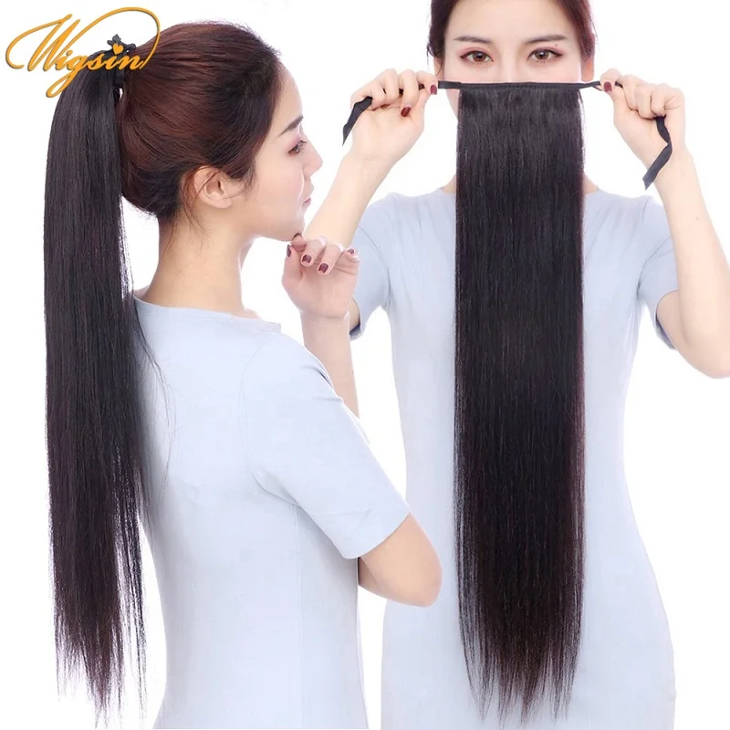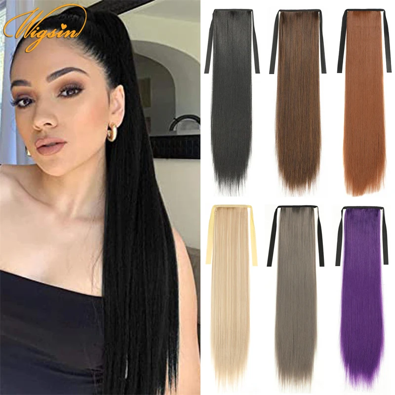 WIGSIN синтетический конский хвост 24 дюйма длинные прямые накладные волосы на завязках натуральный черный светлый шиньон для женщин