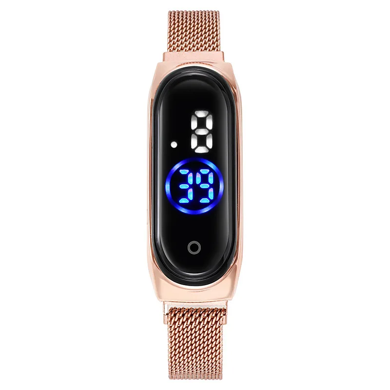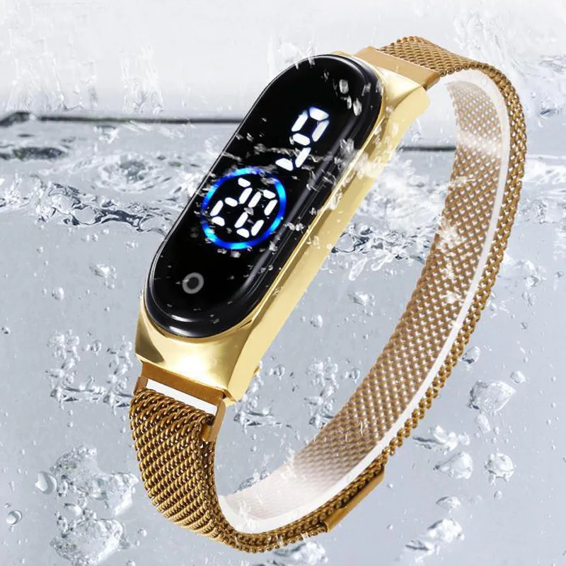 Часы наручные цифровые, спортивные светодиодные, с магнитным ремешком из нержавеющей стали, золотистые, кварцевые, для мужчин и женщин
