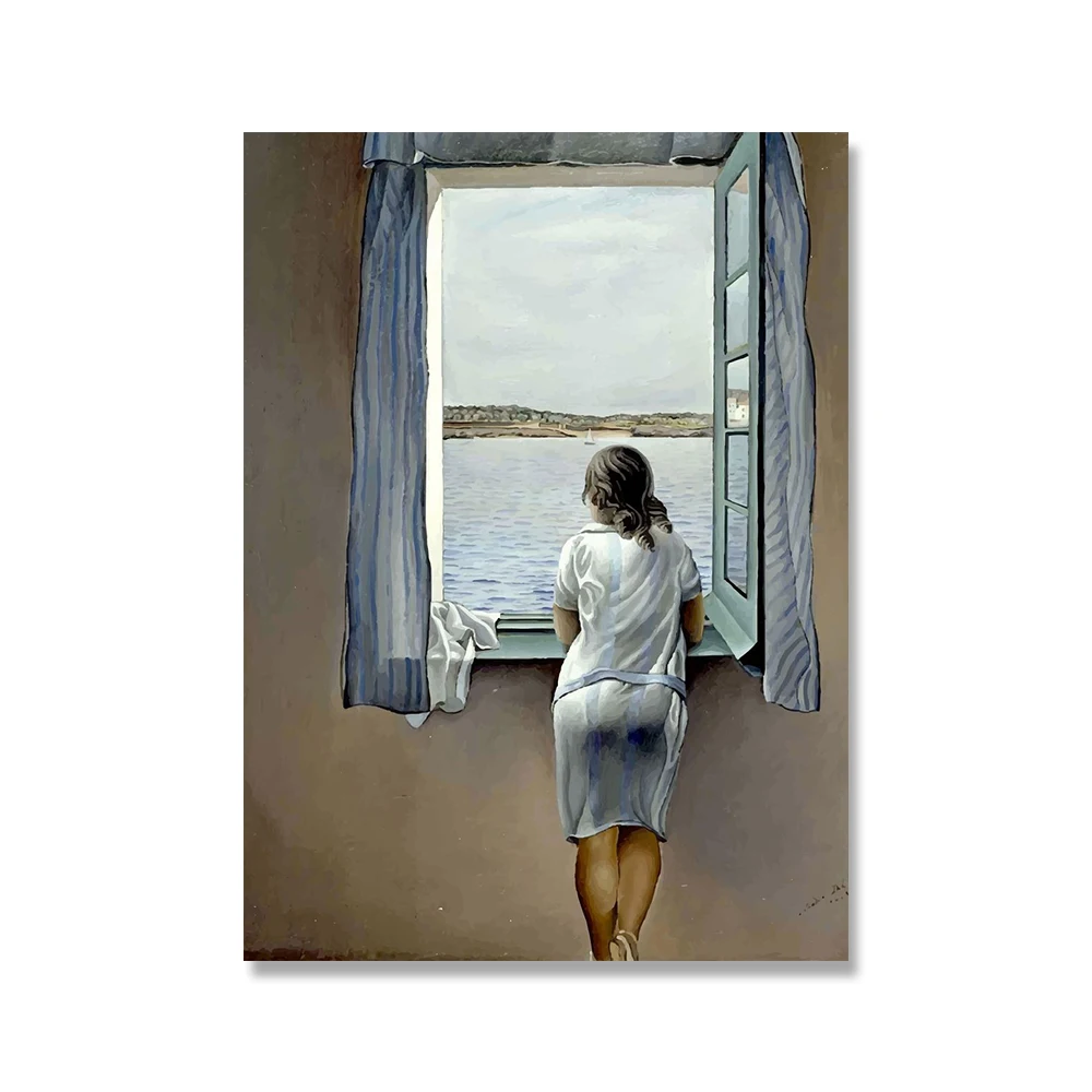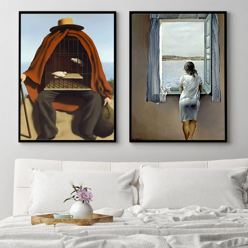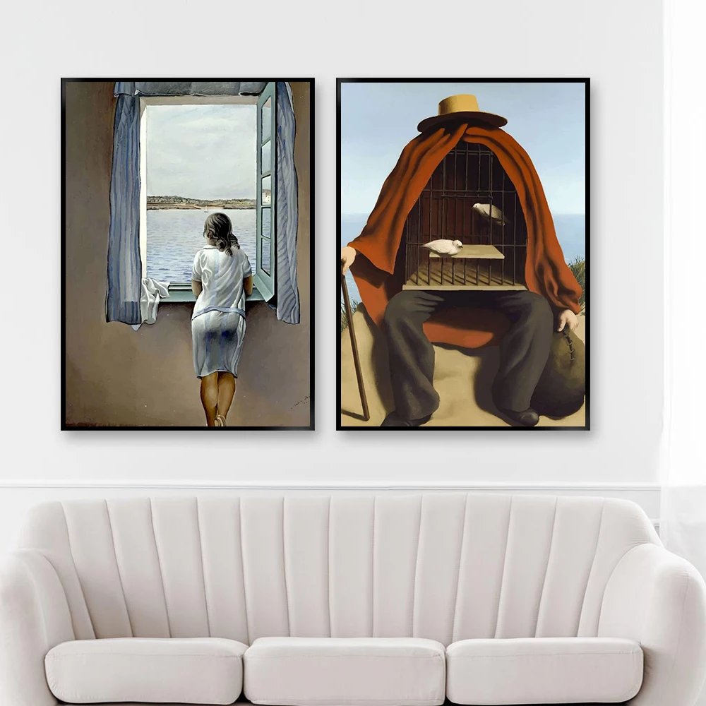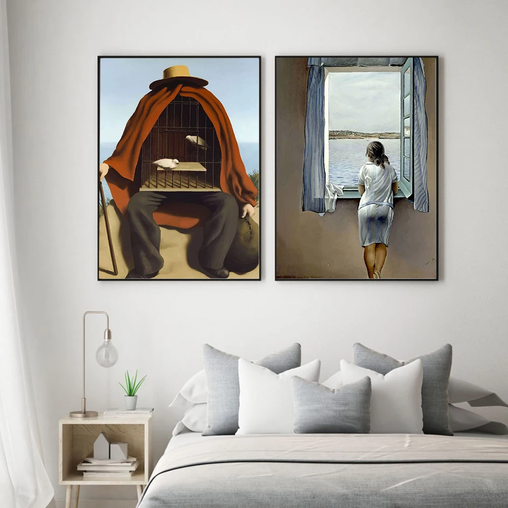Ретро-постеры и принты Rene Magritte, Картина на холсте с изображением девушки у окна дали, абстрактная винтажная Настенная картина, декор для спальни