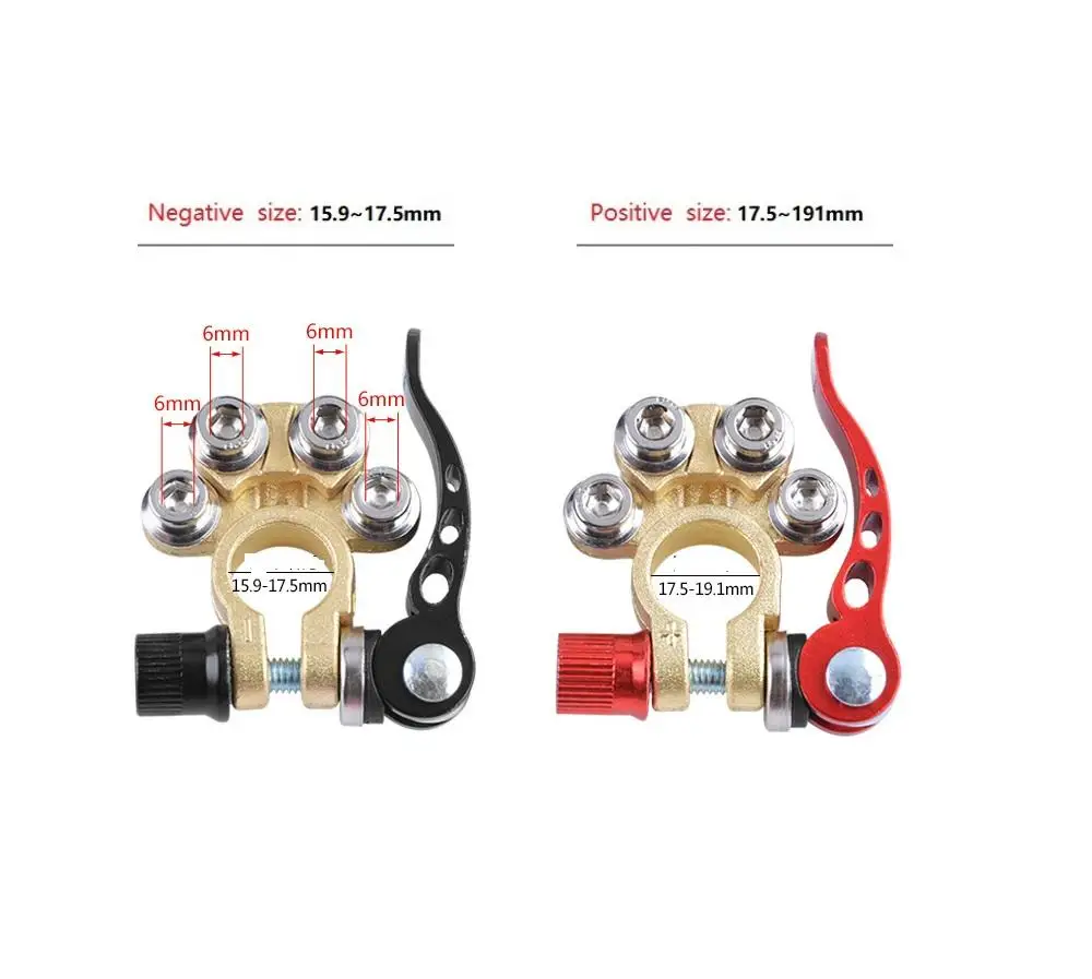 Описание: Название: зажимы для соединителей Материал: медь + алюминиевый сплав Цвет: как показано Вес: 221 г Размер: как показано Положительный терминал совместимый размер: 17,5-19,1 мм Отрицательной клемме совместимый размер: 15,9-17,5 мм Упаковочный лист: Клемма аккумулятора * 2 Гаечный ключ * 1 Примечание: Из-за различных личных причин; Дисплеи, светильник, а также контрастности монитора каждого вас принять во внимание тот факт, быть s светильник разница в цвете между фотографией и фактическими предметами.
