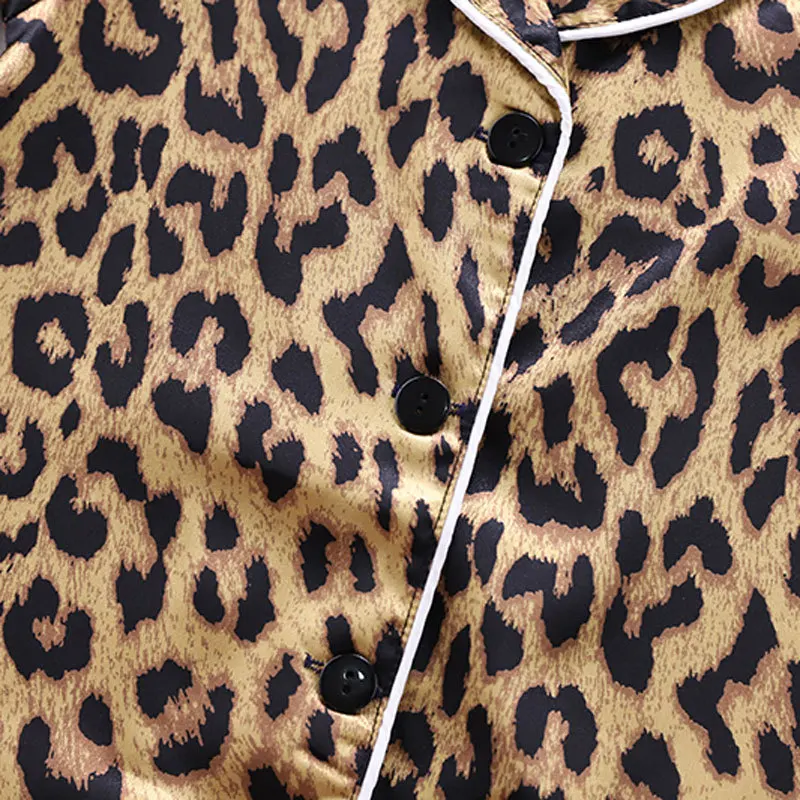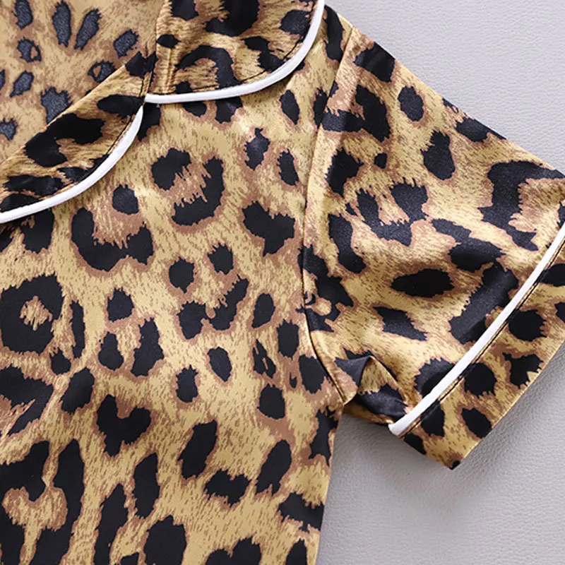 Пижамный комплект детский с леопардовым принтом, шелковая атласная пижама, комплект одежды для мальчиков и девочек, блузка с коротким рукавом и шорты, одежда для сна