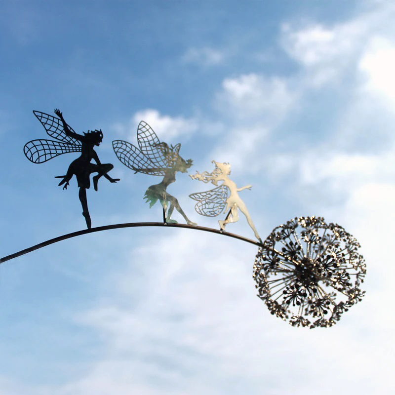 1. Фея играет в Одуванчик: они очаровательные Сказочные Скульптуры из металла. Каждый из них полон энергии и энергии, как будто он может спрыгнуть и исчезнуть с улыбкой эльфов в любое время.