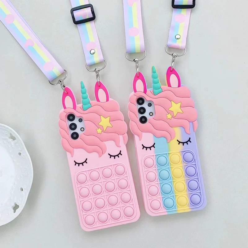 Чехол для телефона с ремнем для Samsung S10 S20 S21 Plus Note 20 Ultra A32 A71 A51 A12 мягкий чехол с мультяшным розовым единорогом