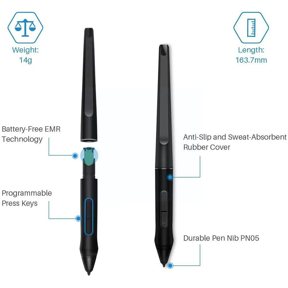 Особенности:Продукт совершенно новый и имеет высокое качествоПомогает уменьшить отпечатки пальцев на экранеОсобенности: две настраиваемые клавиши, просты в эксплуатацииТочная и Быстрая Производительность и 8192 уровней чувствительности к давлению ручки для естественного и гладкого письма, простота в эксплуатацииЛегкий и эргономичный дизайн приятен для захвата, удобен в использованииТщательная работа, гарантированно соответствует спецификациям ваших оригинальных цифровых графических планшетов HUION Характеристики:Наименование товара: стилус для сенсорного экрана без аккумулятораМодель: PW507Цвет: Черный (как на фотографии)Длина: около 163 ммВес: 14 гКоличество: 1 шт.Подходит для: HUION цифровых графических планшетов Kamvas Pro 12/ Kamvas Pro 13/ Kamvas Pro 16/ Kamvas 16/ Kamvas 20 Упаковка включает в себя:1 x ручка без батареи (ПК)