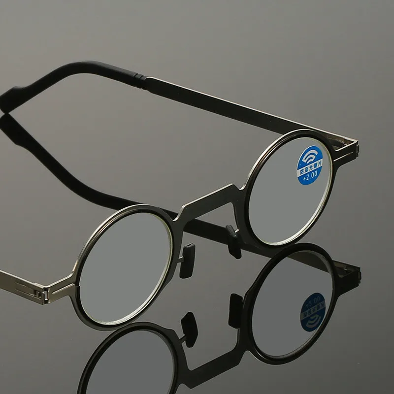 Очки для чтения с защитой от синего света в стиле ретро, мужские очки для дальнозоркости с металлической оправой и круглой оправой, + 1,0 + 1,5 + 2,0 + 2,5 + 3,0 + 3,5 + 4,0