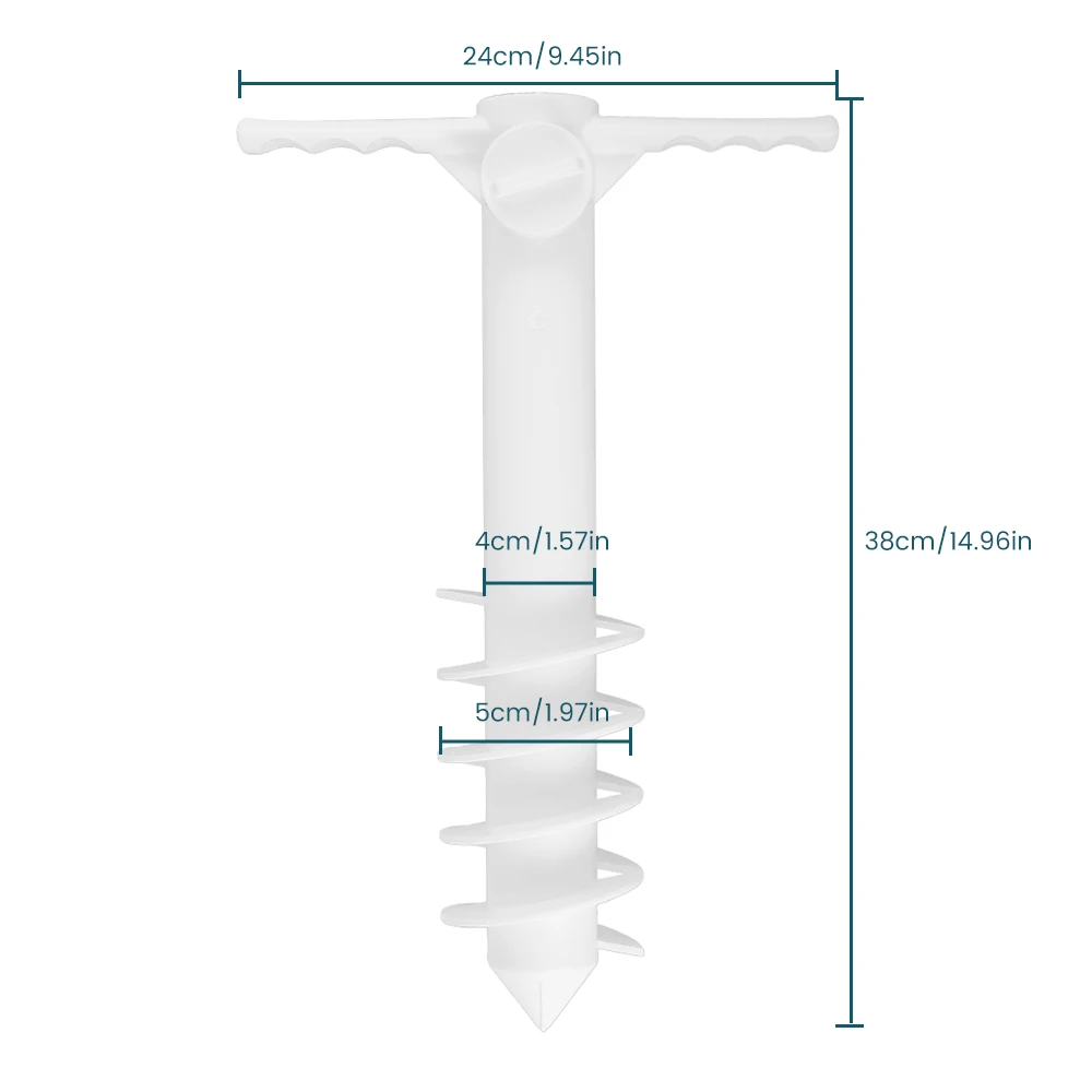 3. Песчаный якорь был разработан с винтовым наконечником, просто прикрутите шнек к песку, грязи или траве, поместите зонт в базовый держатель, Наклоните соответственно.