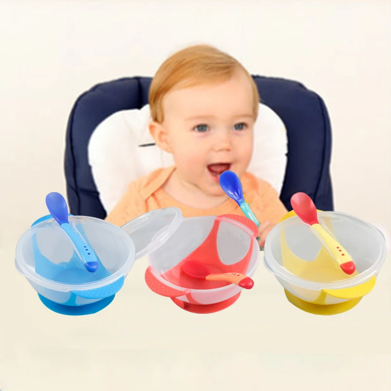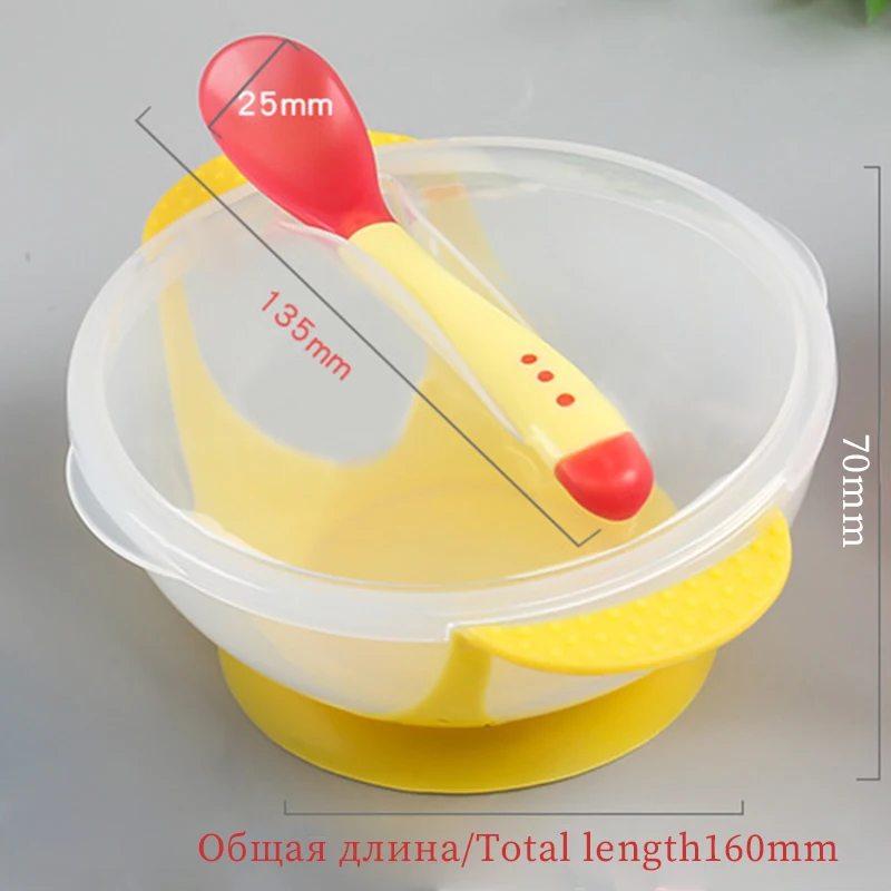 Детская миска на присосках, детская посуда, детское обучающее блюдо с чашей, набор из ПП, чаша с датчиком температуры для кормления ребенка, ложка, блюда