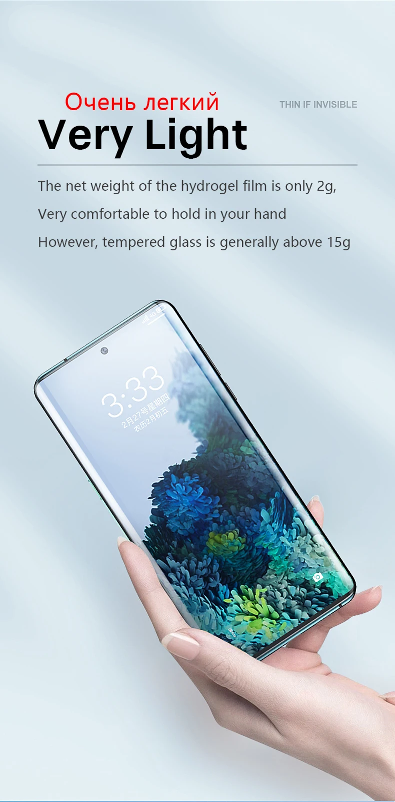 Очень светильник Вес нетто гидрогелевой пленки составляет всего 2 г , Очень удобно держать в руке Однако закаленное стекло обычно выше 15q