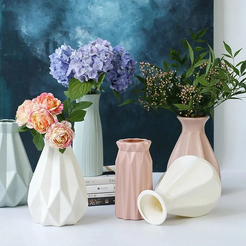 Ваза для цветов, декоративная пластиковая ваза, имитация керамики, цветочный горшок, корзина для цветов в скандинавском стиле