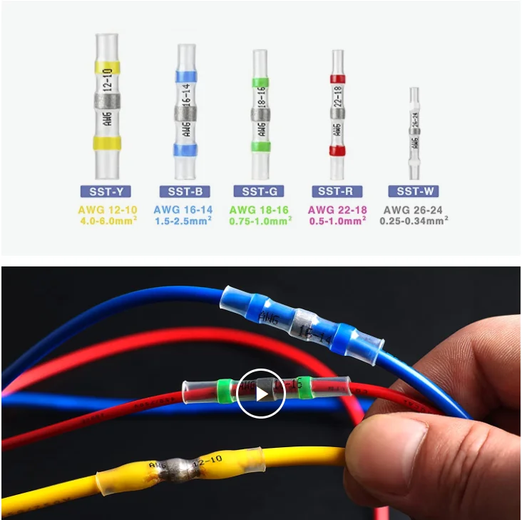 Водонепроницаемый паяльный уплотнитель, соединительные клеммы, термоусадочный электрический соединитель провода, стыковые соединители, набор в ассортименте