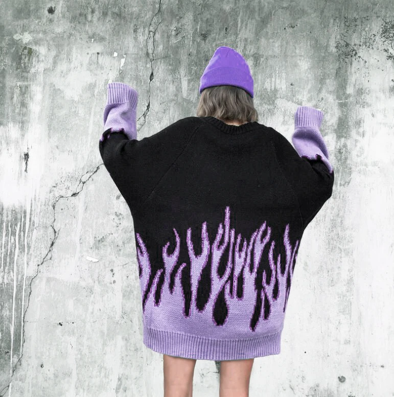 Вязаный свитер с голубым пламенем, мягкий японский плотный осенне-з...