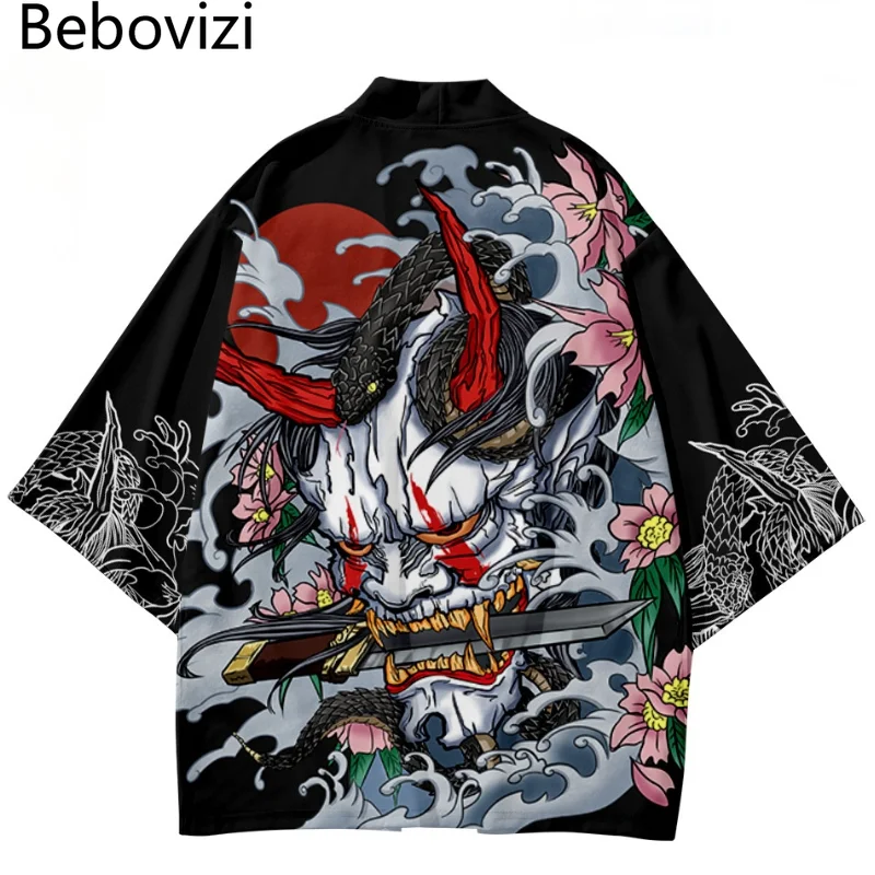 Традиционное японское кимоно с принтом демонов 5XL, 6XL, костюм для косплея, самурайский хаори Оби, женский и мужской кардиган, Пляжная стандартная азиатская одежда