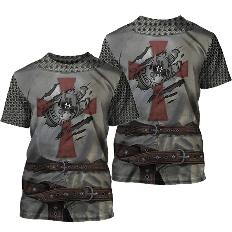 Мужская футболка Templar Knight с 3D принтом, лето 2021, футболки с...