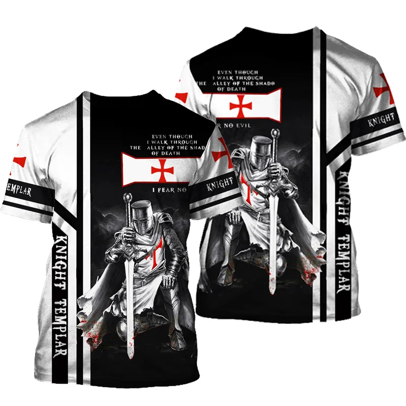 Мужская футболка с 3D-принтом Templar, летняя футболка с круглым вы...