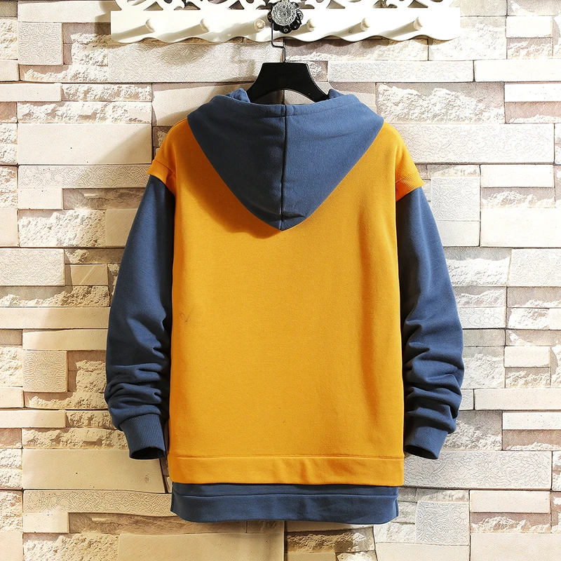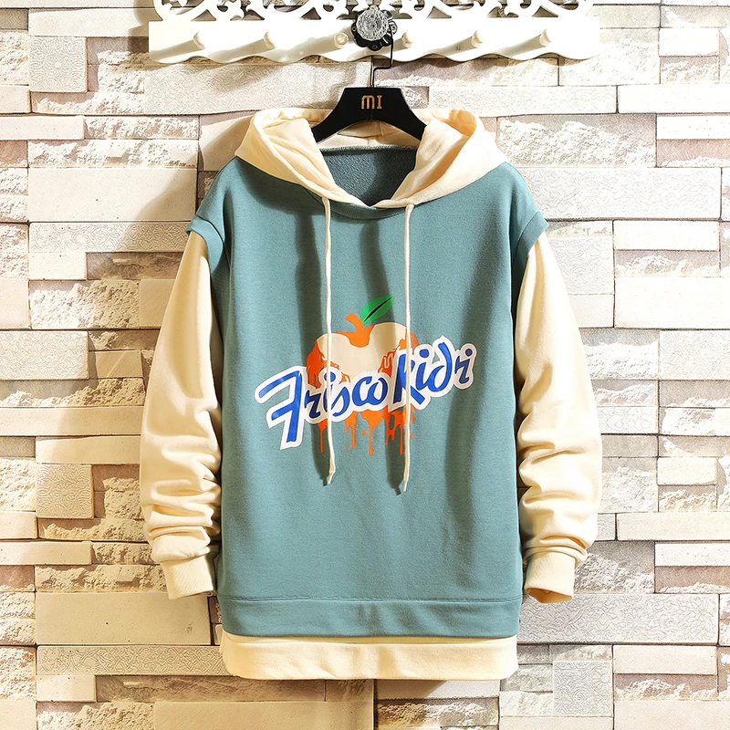 Японский стиль, Повседневная весенне-осенняя коллекция 2022 года, Лоскутная черная толстовка с капюшоном и принтом, Мужская Уличная одежда из плотного флиса в стиле хип-хоп
