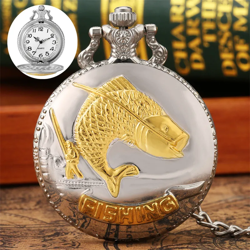 Роскошный дизайн для рыбалки кварцевые карманные часы Fob подвеска ...