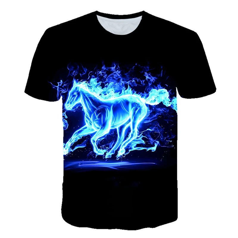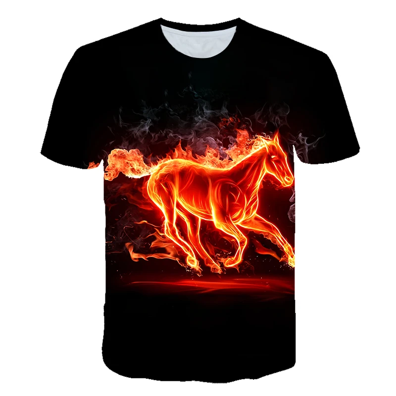 Новинка лета 2021, футболка с 3d-рисунком лошади, Повседневная футб...