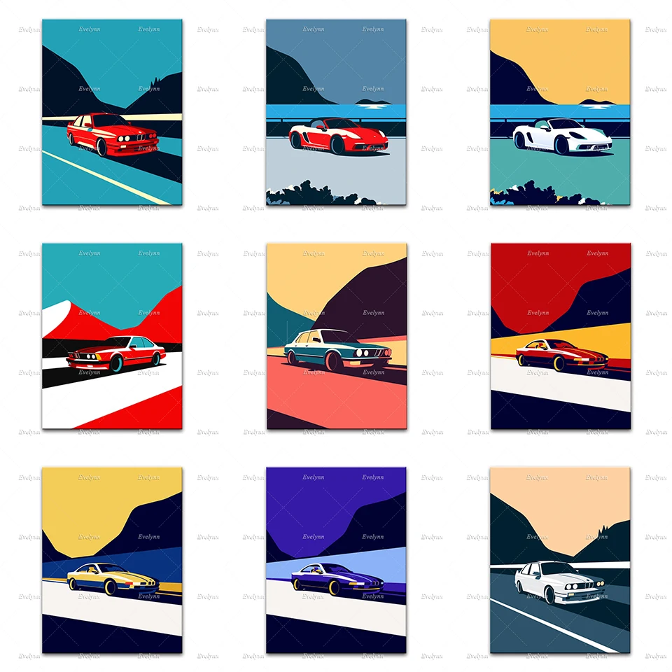 Плакат на стену для Bmw E30, E28, Bmw E24, серия 6, Bmw 8, Porsche Boxster 718