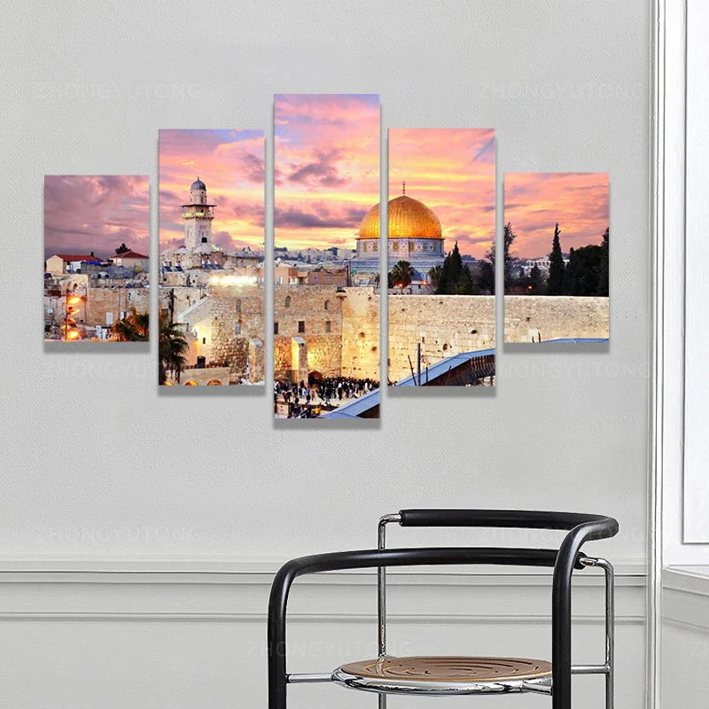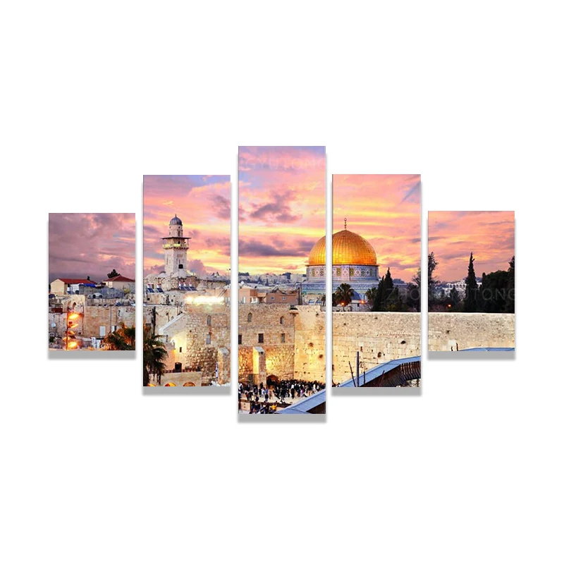 Исламская религия, Картина на холсте, изображение на стене в изображении, Мекка, современный мусульманский Сплит, 5 панелей, печать Жикле для гостиной, дома
