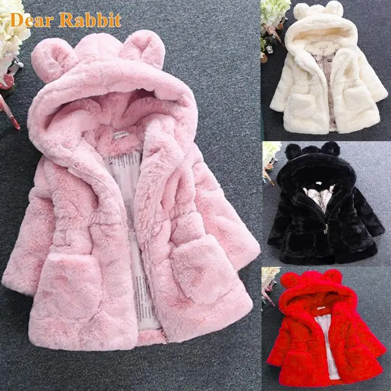 Новая весенняя одежда для маленьких девочек пальто с искусственным мехом флисовая куртка теплый зимний комбинезон, От 1 до 7 лет парка с капюшоном Детская верхняя одежда осенняя одежда