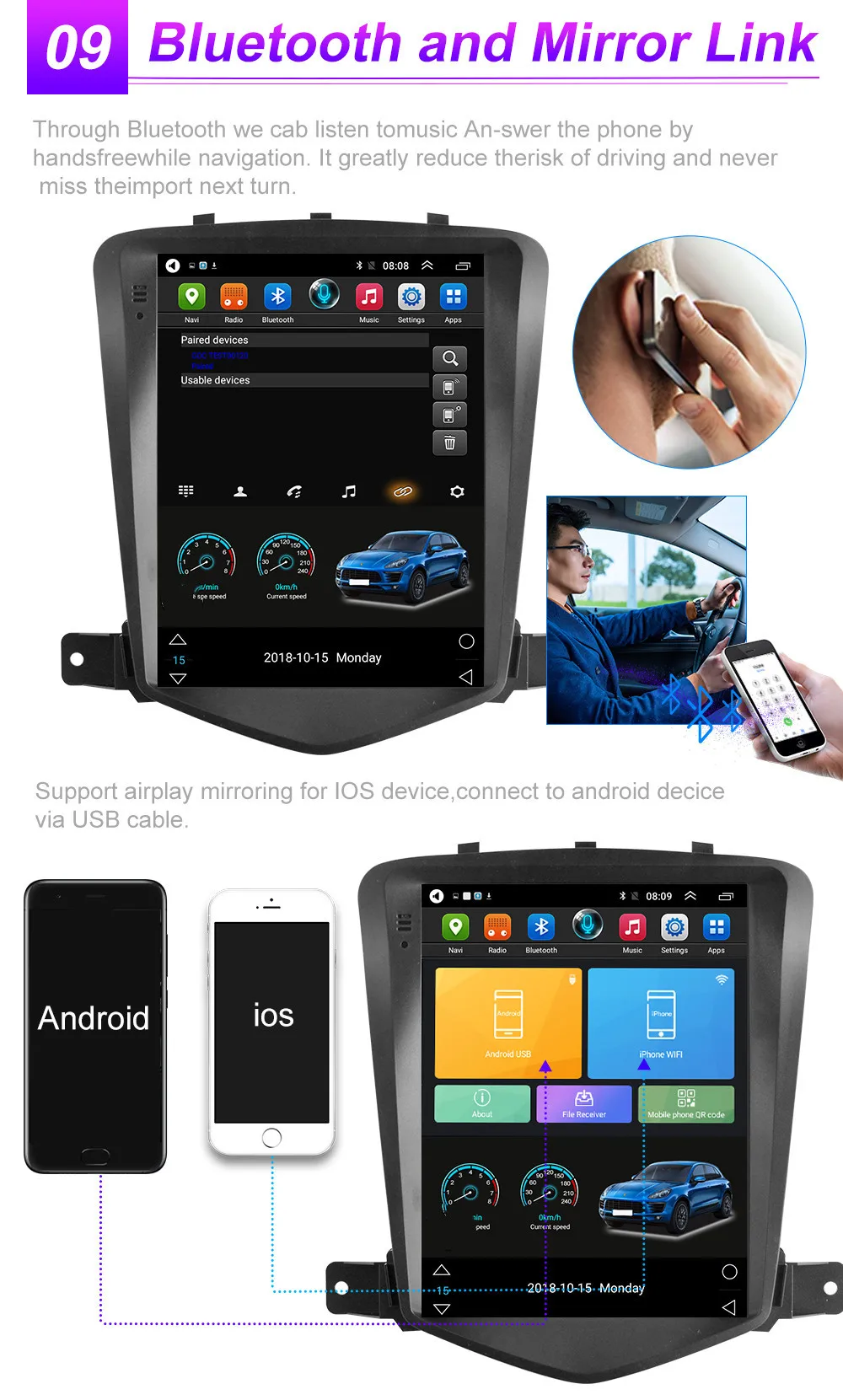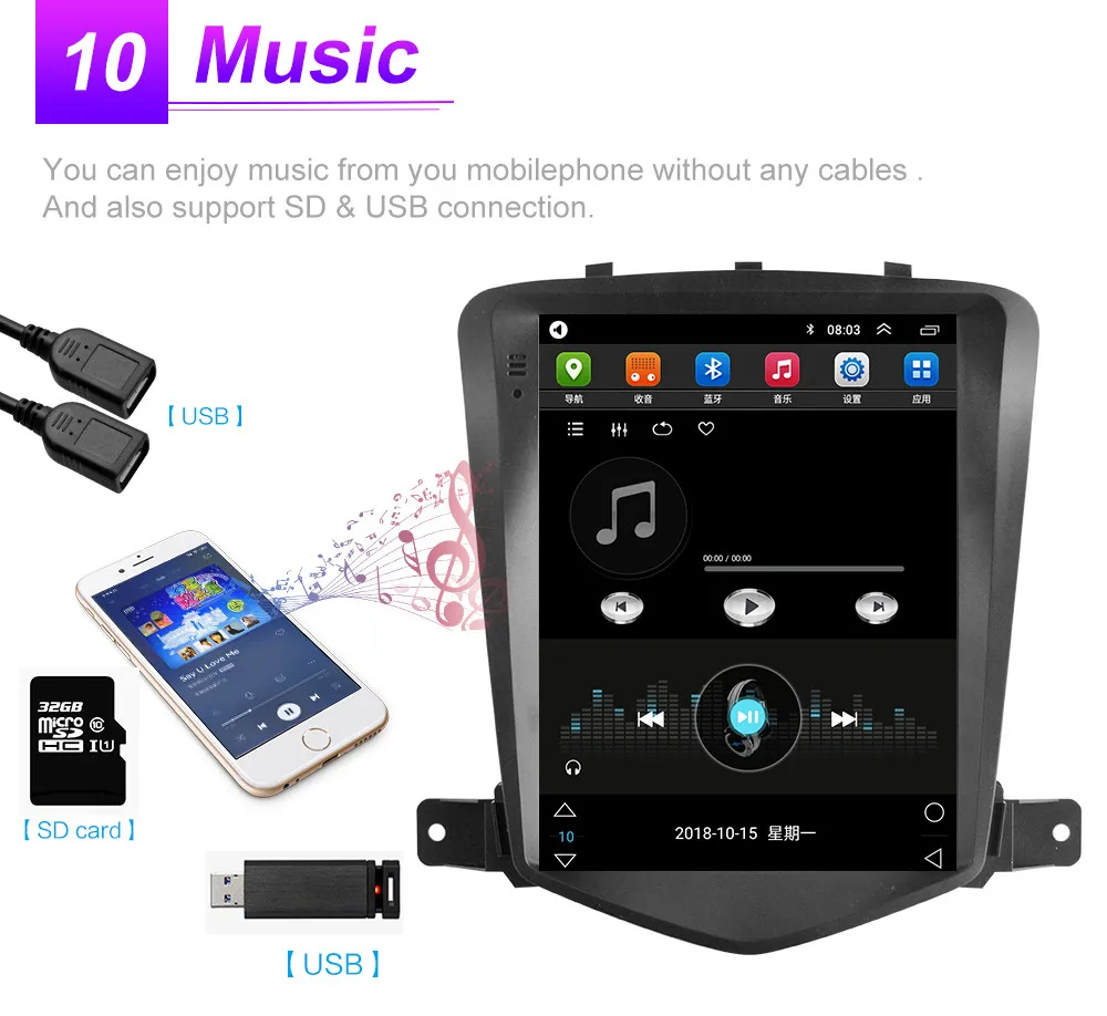 Для Chevrolet Cruze 2008 2009 2010 2011 2012 2013 20141, 4-х ядерный конфигурация включает в себя (Оперативная память + Встроенная память): 1 Гб + 16 ГБ/2G + 32G [дополнительно];2, 8-ядерный конфигурация включает в себя (Оперативная память + Встроенная память): 7260-2G + 32G / 7260-4G + 64G / 4G-SIM-5760-2G + 32G / 4G-SIM-5760-4G + 64G /4G-SIM-TS10-4G + 32G/ 4G-SIM-TS10-6G + 128 г [дополнительно];3, 4-х ядерный содержит: версия: Android 8,1;Четырехъядерный процессор MTK8227 / Cortex-A7Поддержка автомобиля logo5; Sfactory пароль: 8888;Разрешение: HD 2.5D,1024*600;Не поддерживает функцию AM, функцию RDS;Обычная посылка WiFi поддерживает функцию видеовыхода;4, 8-Core содержат: версия: Android 9,0;Восемь ядер: CPU Quad core и GPU Quad core соответственно;Поддержка автомобиля logo5; Sfactory пароль: 8888; Разрешение: HD 2.5D,1024*600;Версия 7260-WIFI: поддерживает функции DSP, сплит-экрана; Не поддерживает видеовыход;4G-SIM-5760-WIFI версия: поддерживает функции DSP, Carplay, сплит-экрана; Не поддерживает видеовыход;5. Операционная система Android может установить приложение Google Play store Skype Facebook youTube Twitter и т. Д.;6. Поддержка: радиостанция, Bluetooth Вызов, Bluetooth музыка, управление рулевым колесом, встроенный WiFi, MP3, видео музыка (MPG, AVI), навигация, видеовыход, зеркальная связь, USB 4G LTE WIFI ключ и другие функции
