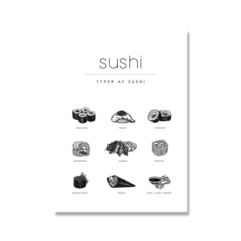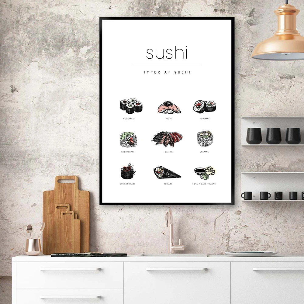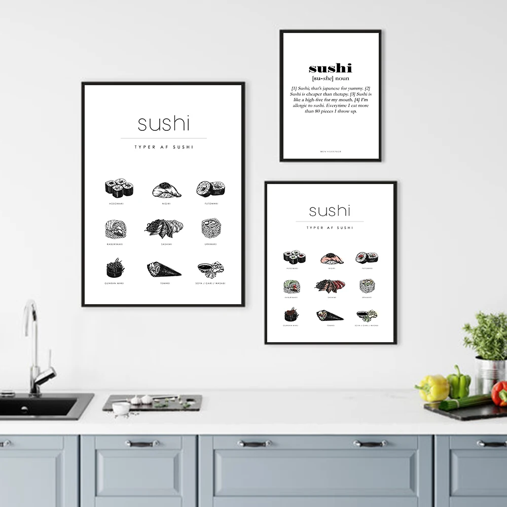 Настенная картина с японской едой для суши, постер на холсте для кухни, определение для домашнего декора, для гостиной