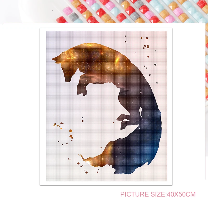 Алмазная вышивка с изображением лисы, квадратныхкруглых животных, н...